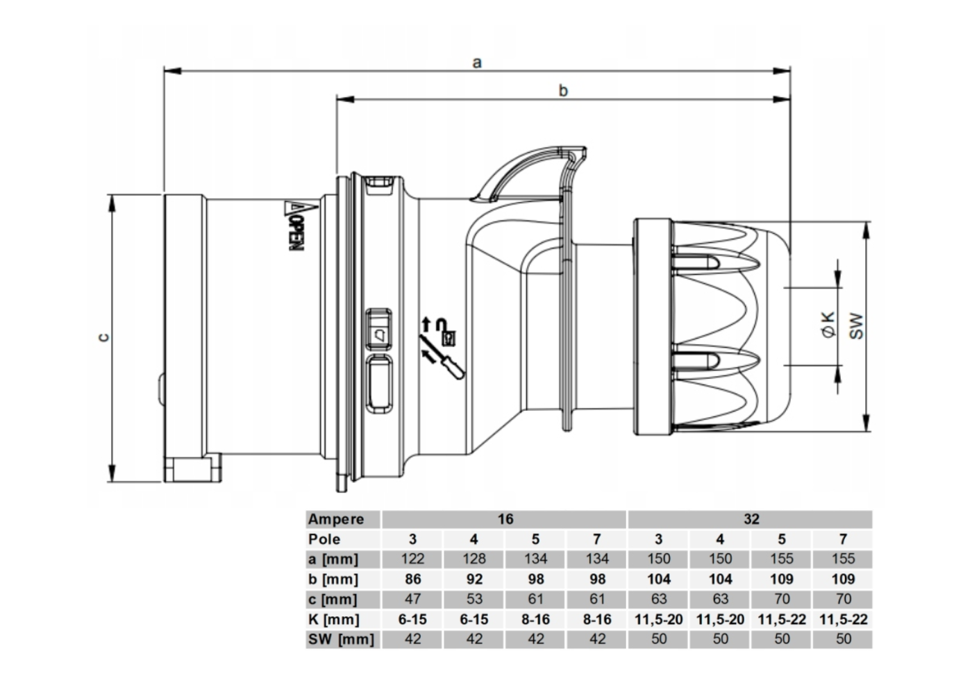 fiche : marque exclusive PCE 32A 5P 400V