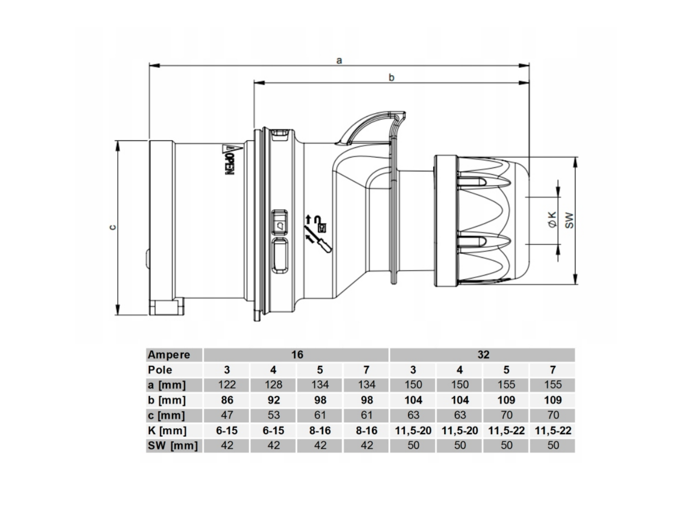 Courant nominal : 16A