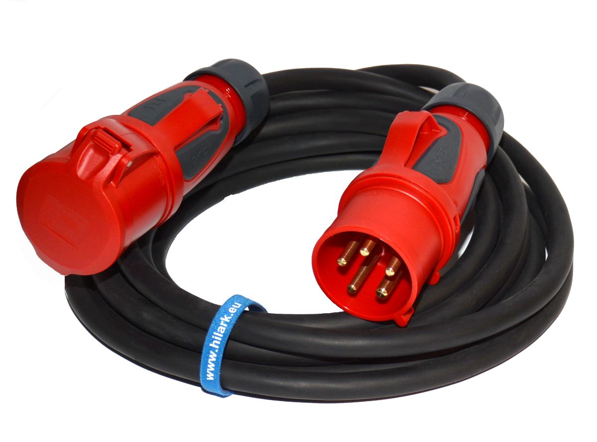 Rallonge triphasée CEE, en caoutchouc pour une utilisation sur chantier, à la maison et au jardin