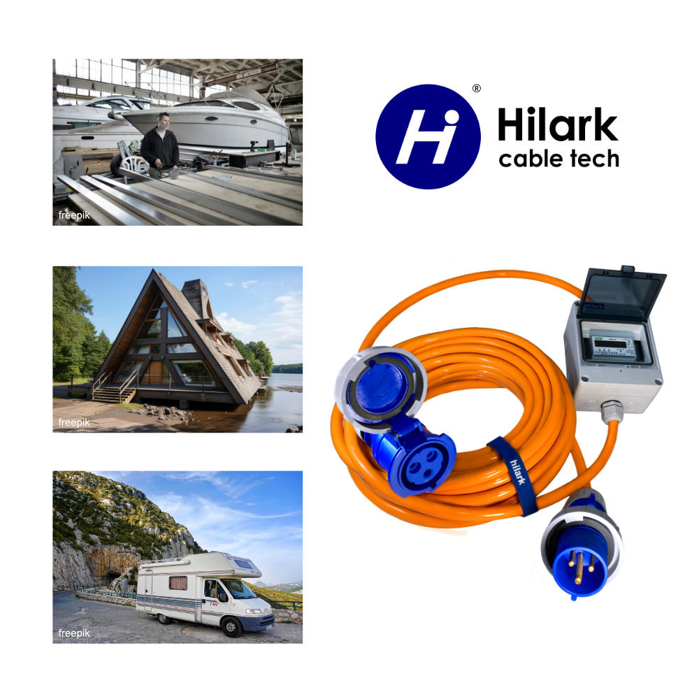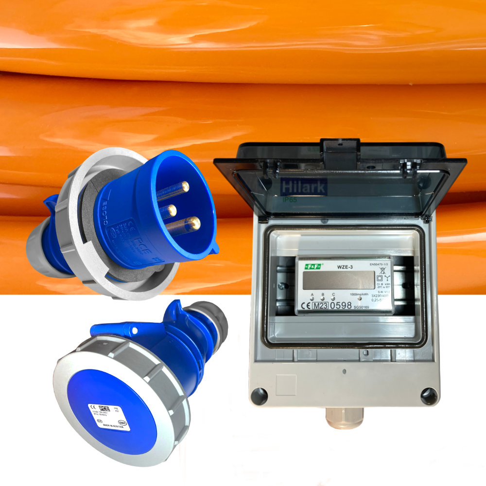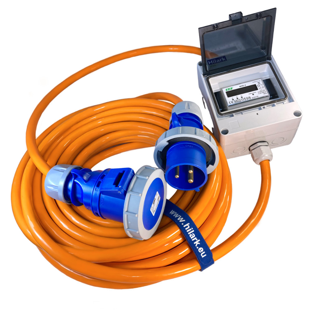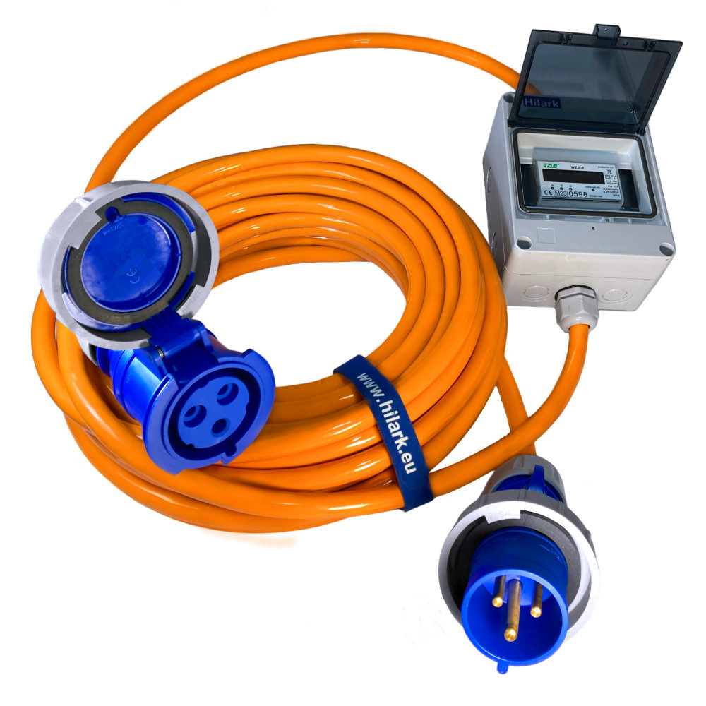 Rallonge triphasée CEE pour camping-car 32A PUR H07BQ-F 5x4mm² IP65 avec compteur d’énergie 1m