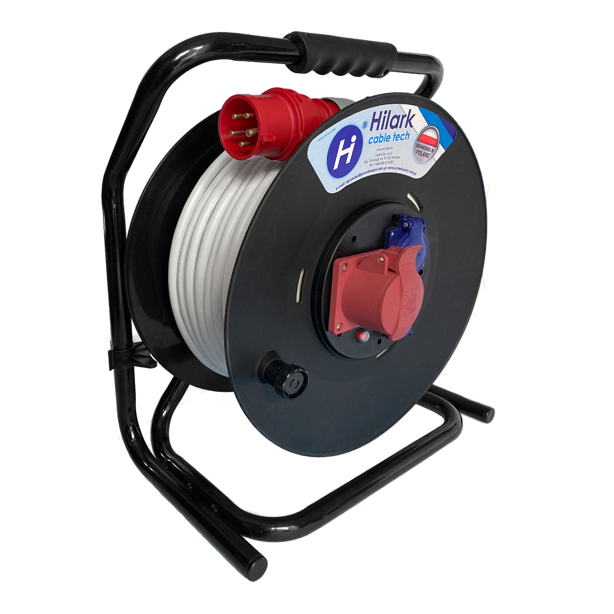 Rallonge triphasée CEE sur enrouleur avec prises 16A 5P 400V+ 2*16A 2P+T 230V