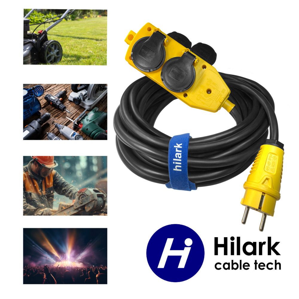 Répartiteur et fiche jaunes, rallonge H07RN-F 3×2,5, quatre prises pour utilisation en atelier, jardin et maison 2m