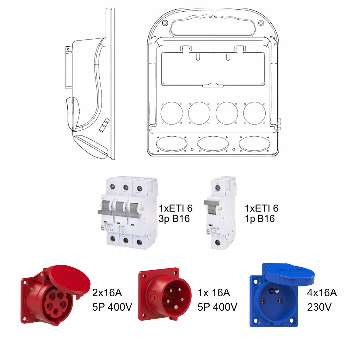 - 2 x gniazda PCE 16A 015-6 5P 400V IP44 / IP54,