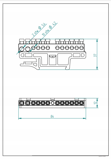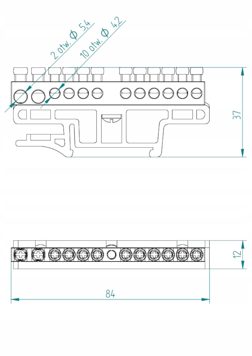 • nombre total de raccordements : 12 voies pour montage sur rail TH35