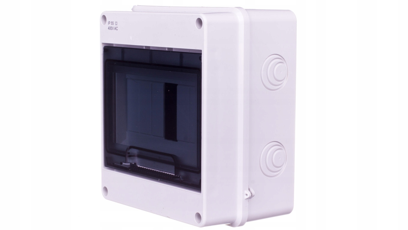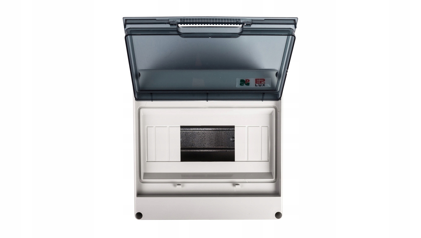 Tableau hermétique EP-LUX PLUS. Degré de protection IP55, Tension nominale 400V, Barres de connexion N+PE incluses, Norme: PN-EN 61439-3:2012, PN-EN 61439-1:2011, Couleur du boîtier RAL7035 ( gris clair ), Résistance aux chocs IK08 Produit Polonais, Construction rigide du boîtier, Grand espace pour le câblage, Possibilité de plombage du boîtier, Affaiblissements pour le montage des presse-étoupes, Barres de connexion N+PE incluses