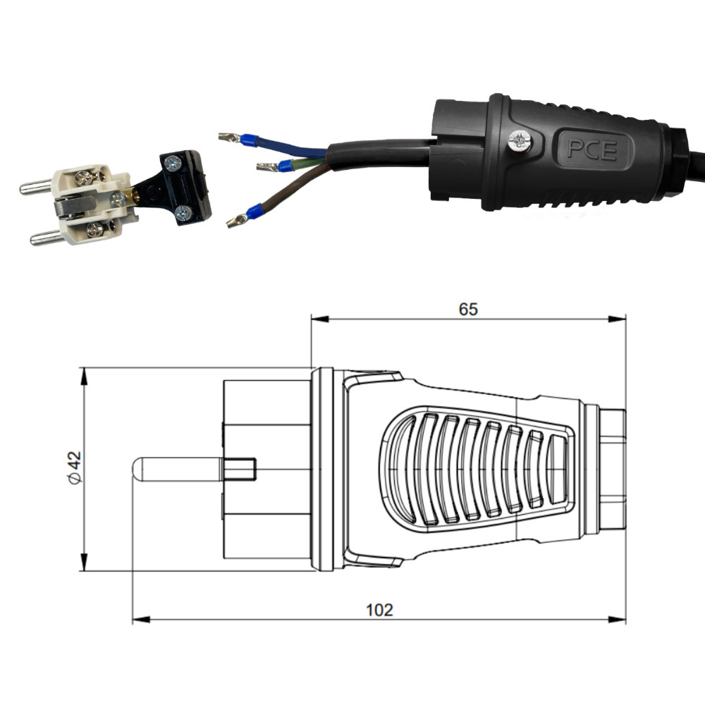 stopień ochrony: IP54, wysoki stopień ochrony gwarantuje odporność wtyczki na pył i zachlapania