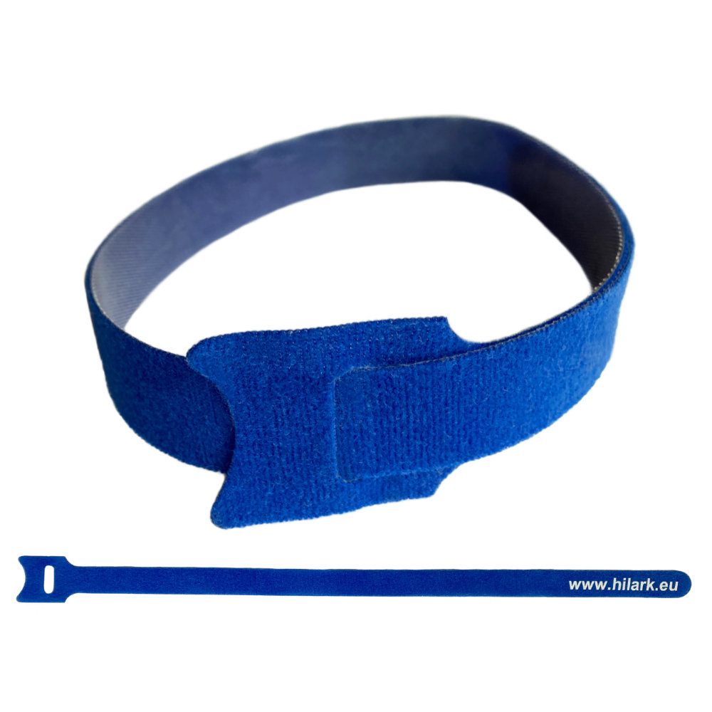 Serre-câble velcro 20mm x 500mm avec boucle, en couleur bleue